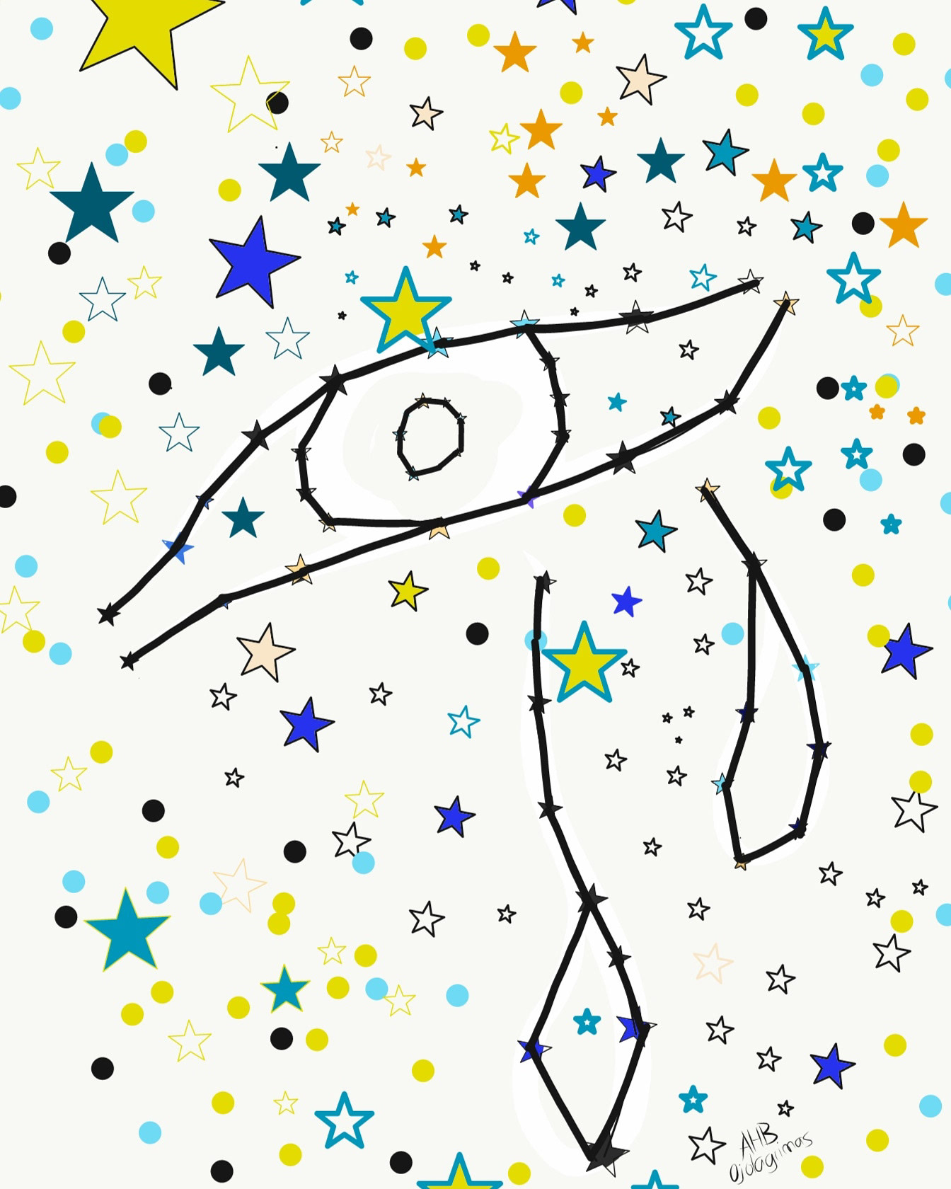 Minimalismo Digital. La obra central es el icono EMPATíA. Es un ojo en negro con el recorrido de dos lágrimas por la mejilla. En Laniakea. 0000 0004 7977 7698
