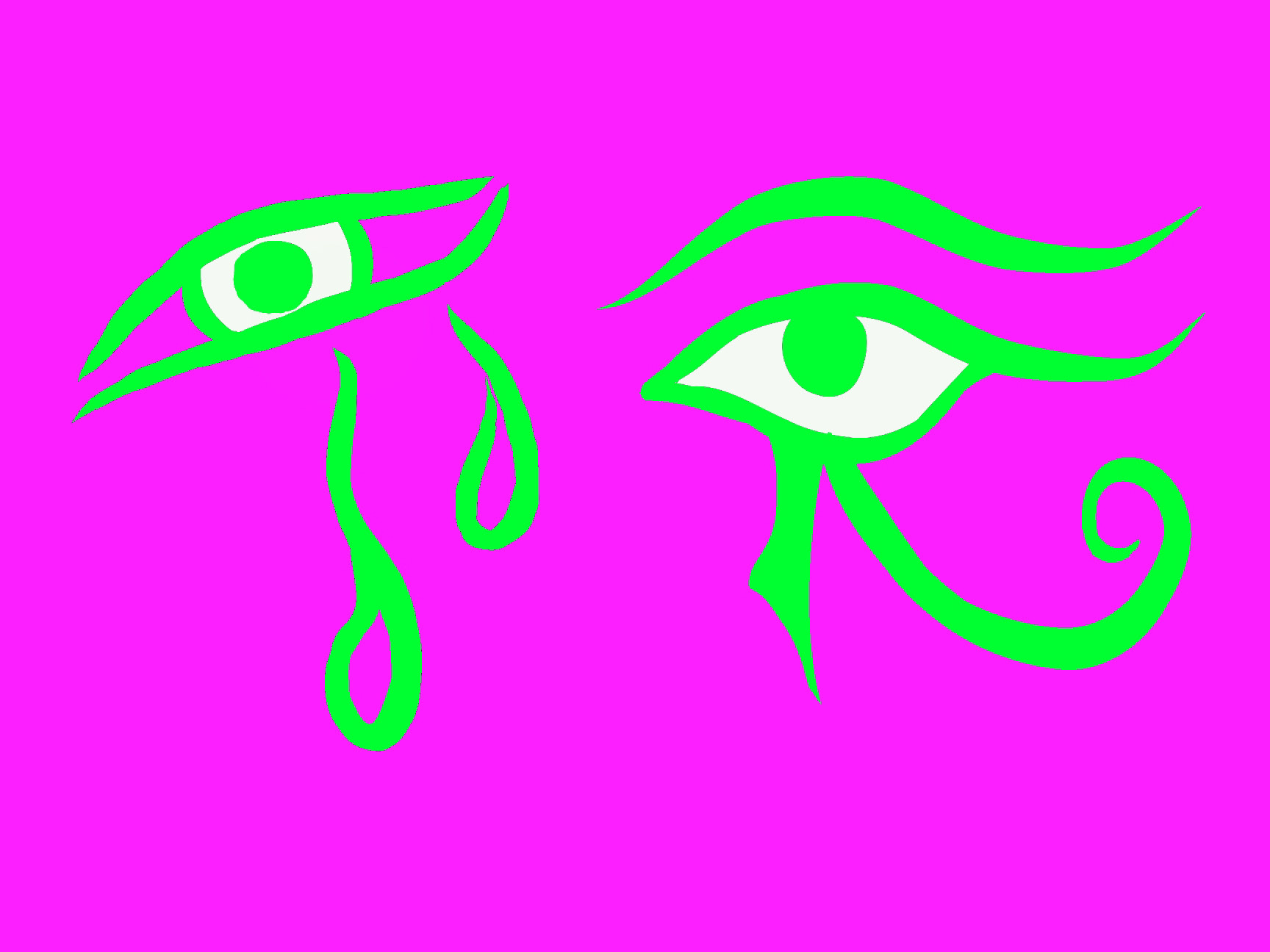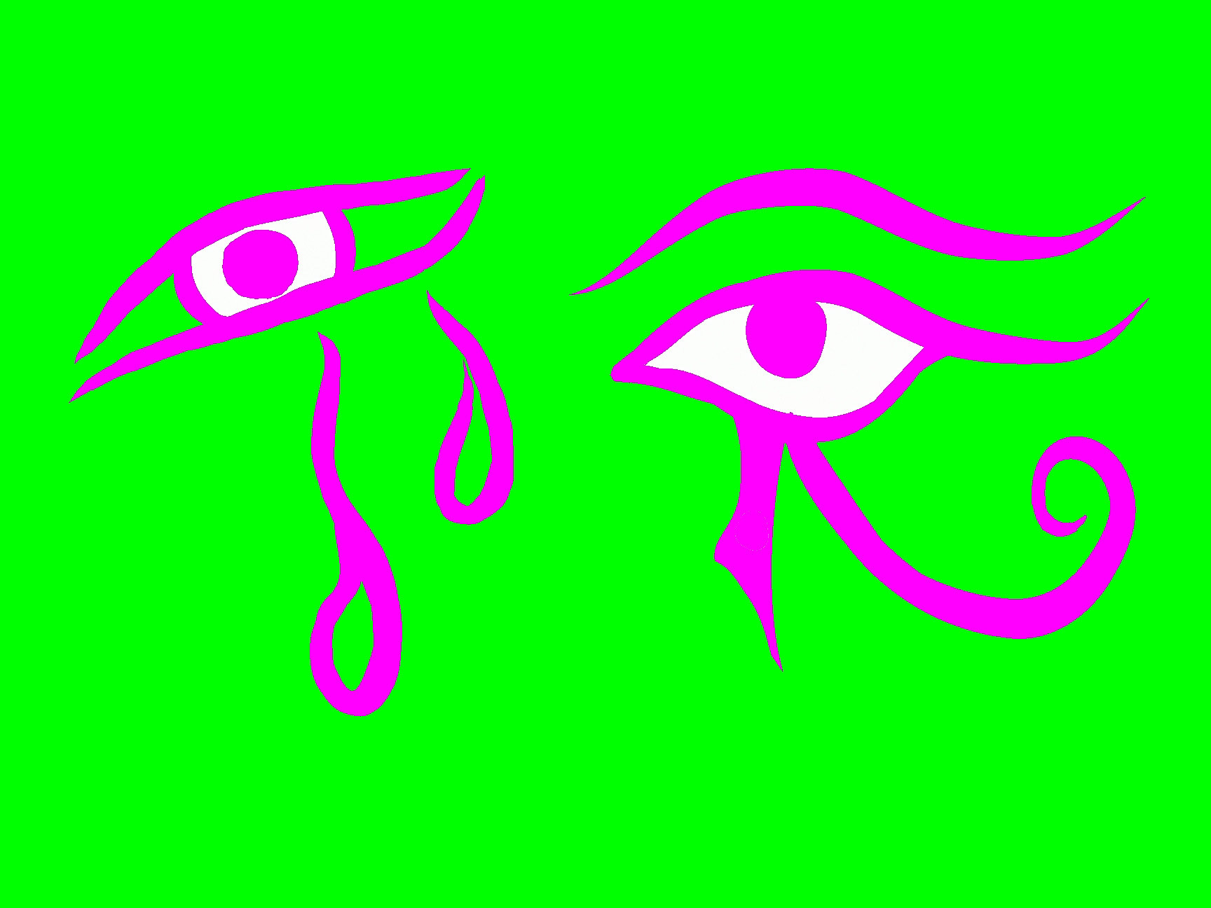 Ojolagrimas, son mis diseños de iconos, de ojos con dos lágrimas derramadas. Están los Ojolagrimas cerrados, como mi Obra Maestra el ojolagrimas de cuatro trazos (también lo hice de un solo trazo), y el ojolagrimas semicerrado o Icono Bello que pertenece a María Magdalena, en una escena escultórica, sacada de una foto de Vasil. Luego lo utilizo junto a mis iniciales AHB para firmar el cuadro digital.