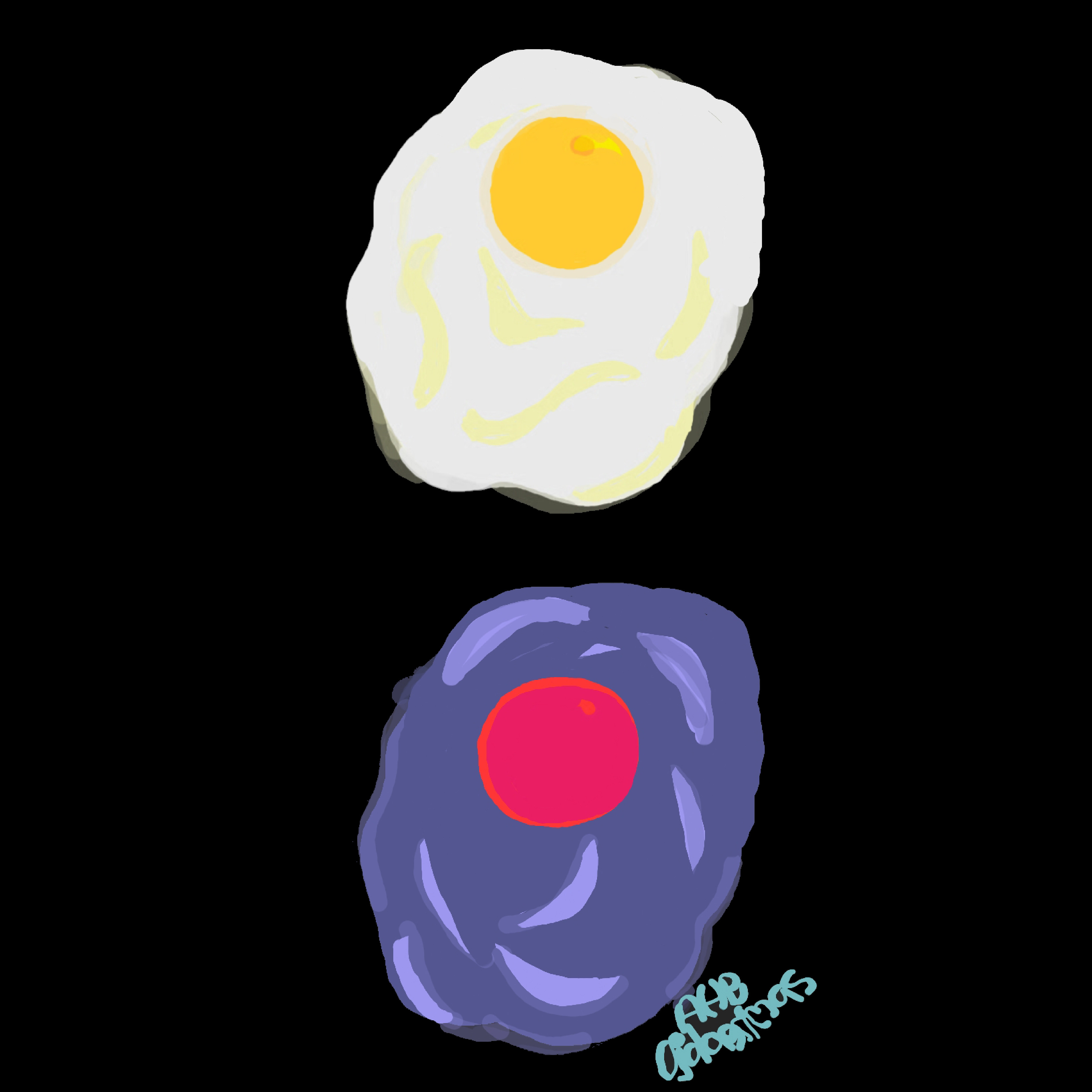 Huevos fritos de colores y dedicados, barca, falange, a personas, ivam...
